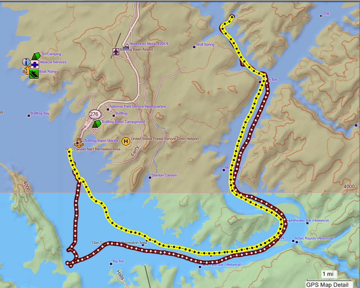 GPS track from bullfrog boat ramp to Hanson Canyon.